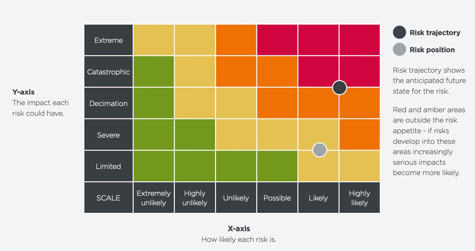 Returning to the six identified risks, their likelihoods are now all likely or highly likely in my opinion.