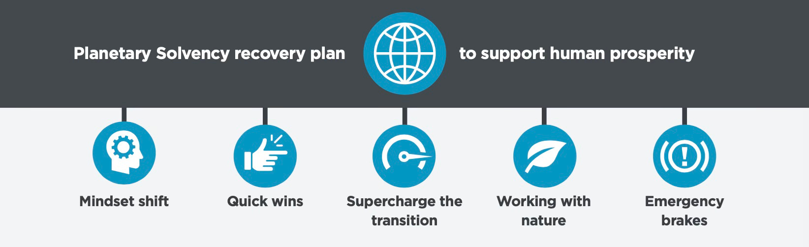 “Planetary Solvency is threatened and a recovery plan is needed: a fundamental, policy-led change of direction, informed by realistic risk assessments that recognise our current market-led approach is failing, accompanied by an action plan that considers broad, radical and effective options.”