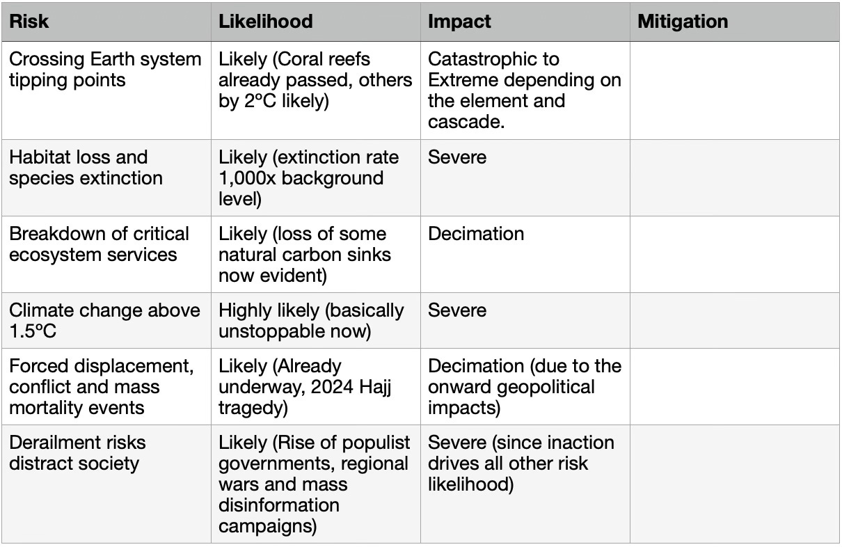 Climate change is a risk to Planetary Solvency (assessing the risk impacts)